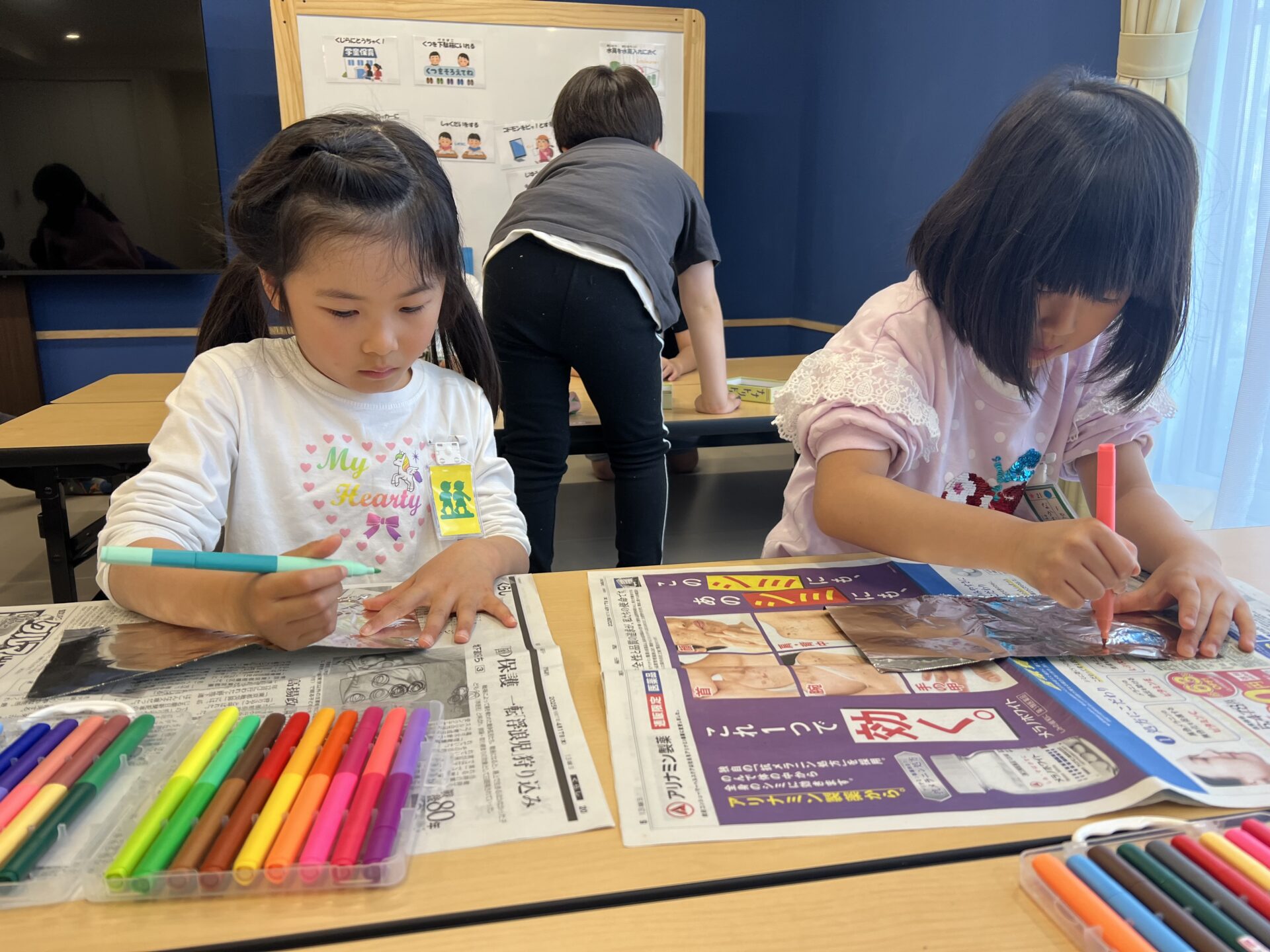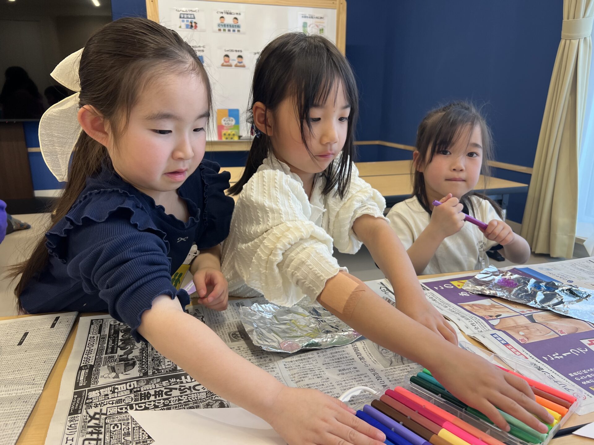 こいのぼりの形をした画用紙をペタッとするとこいのぼりのキレイな模様が完成しました✨