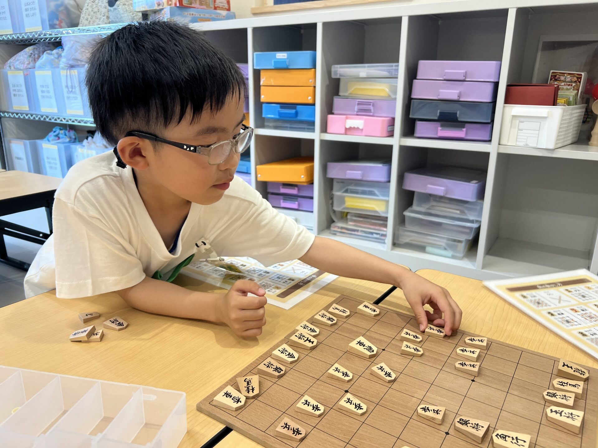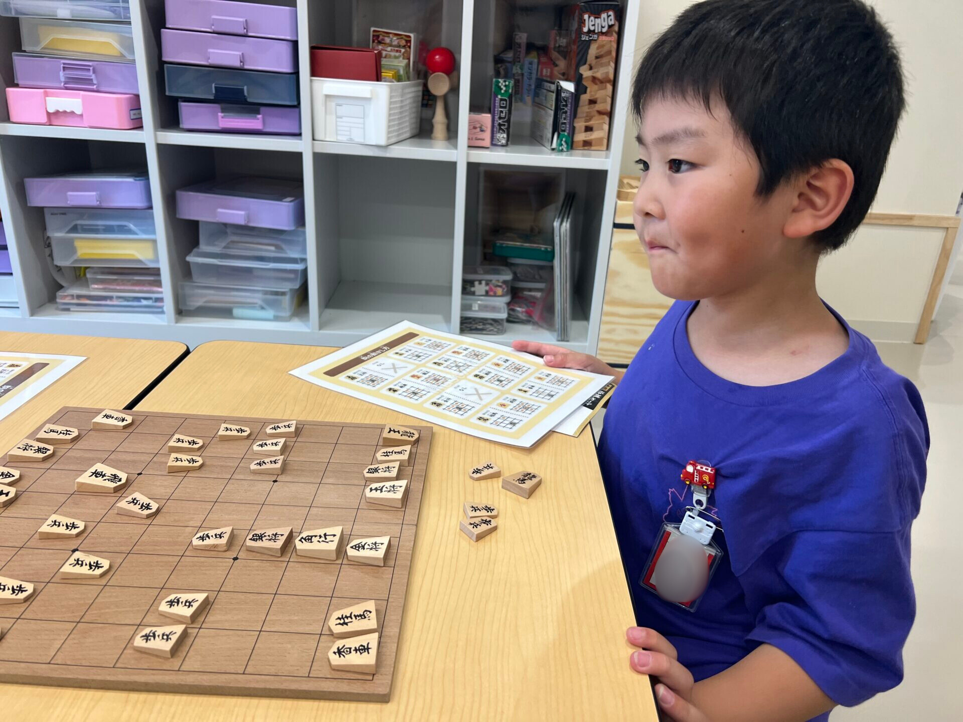 少し難しいが説明書を見て進み方などを自分たちで確認をしながら将棋をしています☖!