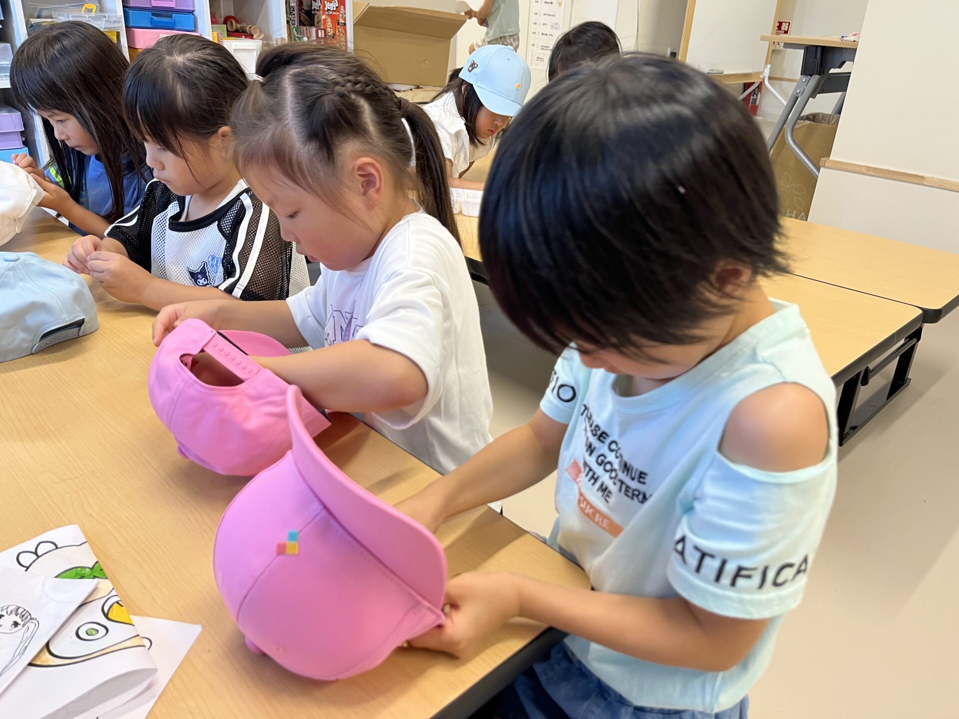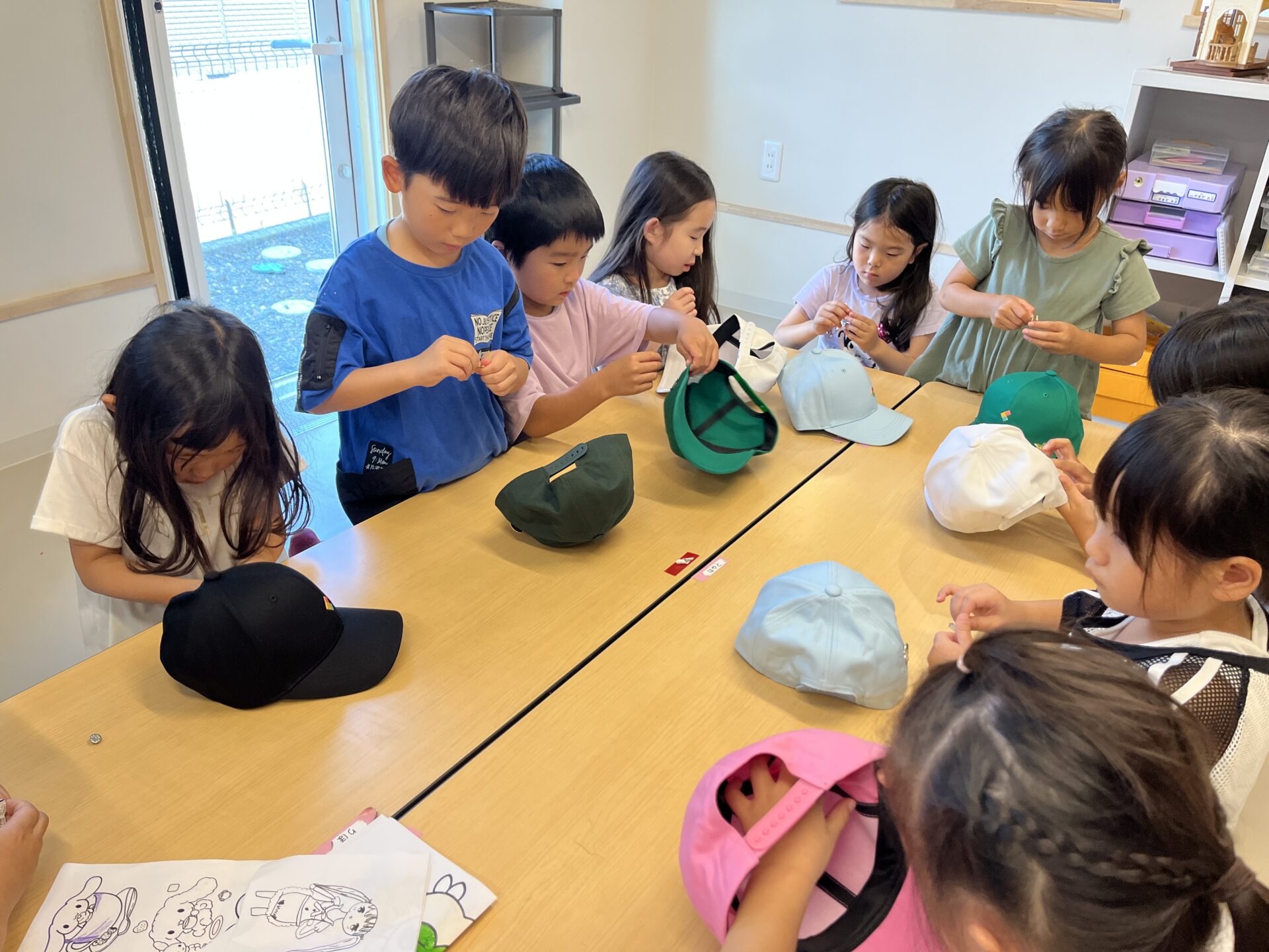 実は7月の上旬に、子どもたちにはそれぞれ好きな色の帽子を選んでもらっていました。