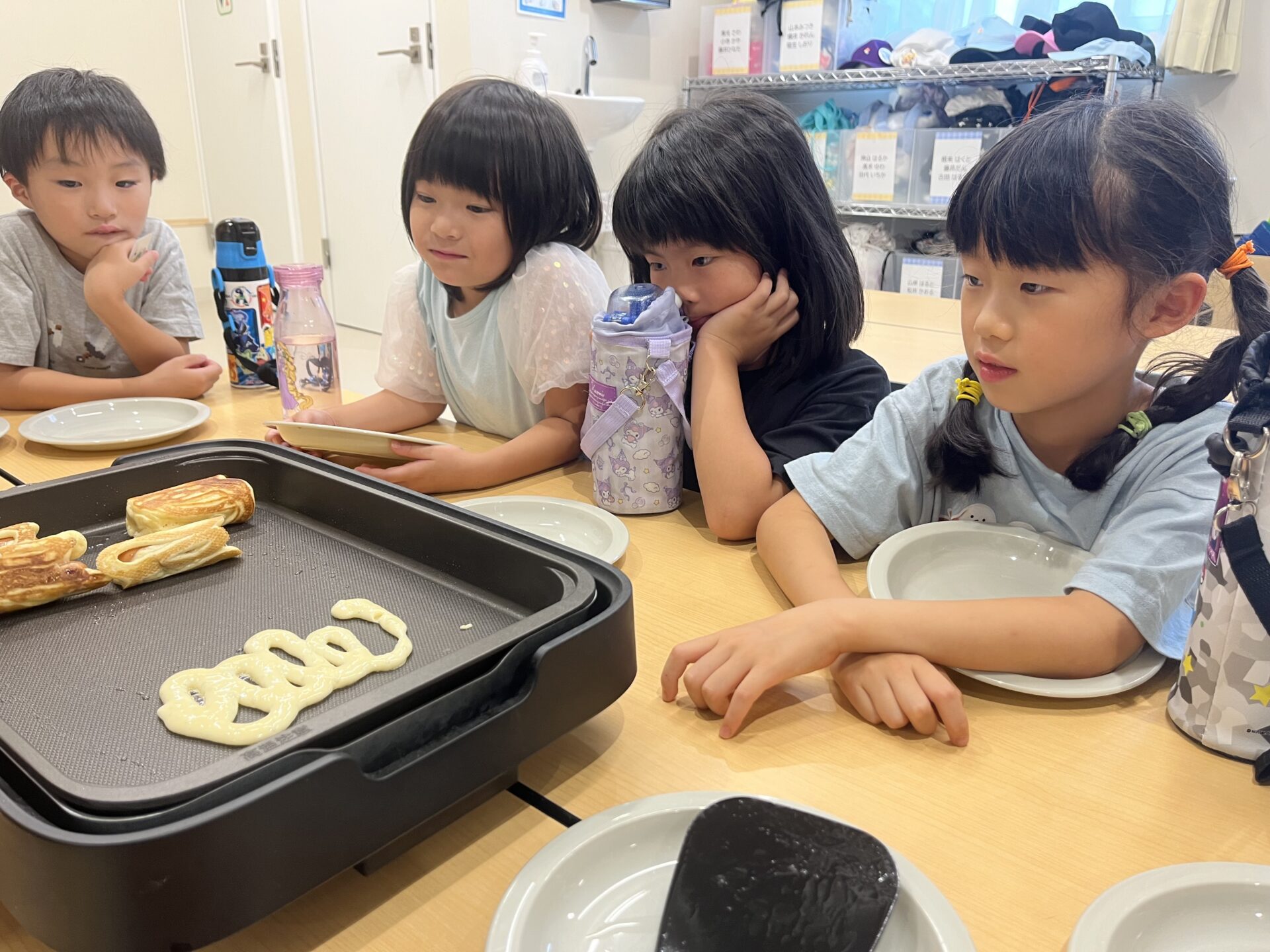 子ども達はホットプレートを囲って座り、焼きあがるのを今か今かと待っています💭