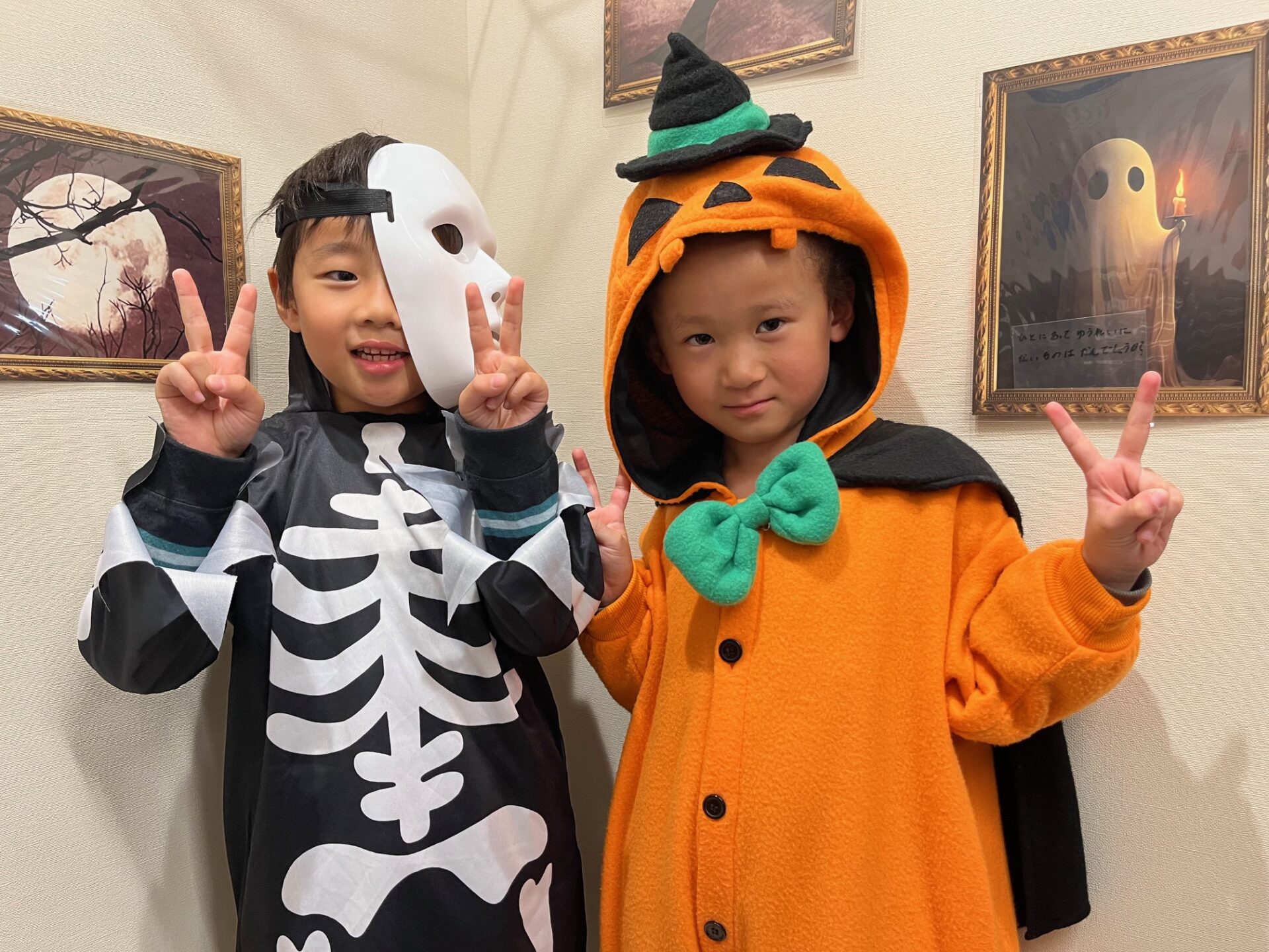 カボチャの裏に書いてある問題を解いたり、隠されたおばけの絵を探したりと、あちこちで楽しそうな声が聞こえてきました👻