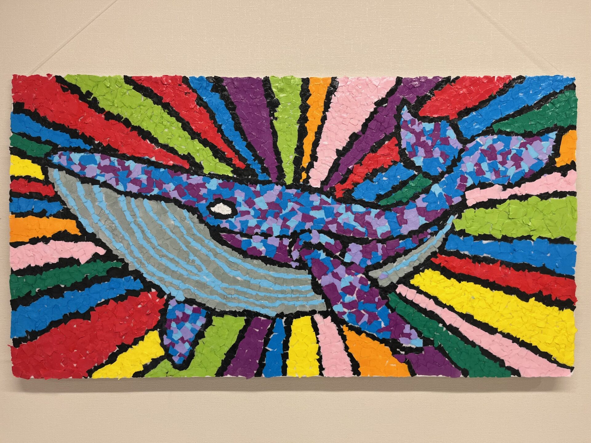 今回はくじらをモチーフにした、カラフルなステンドグラス風のちぎり絵に挑戦!