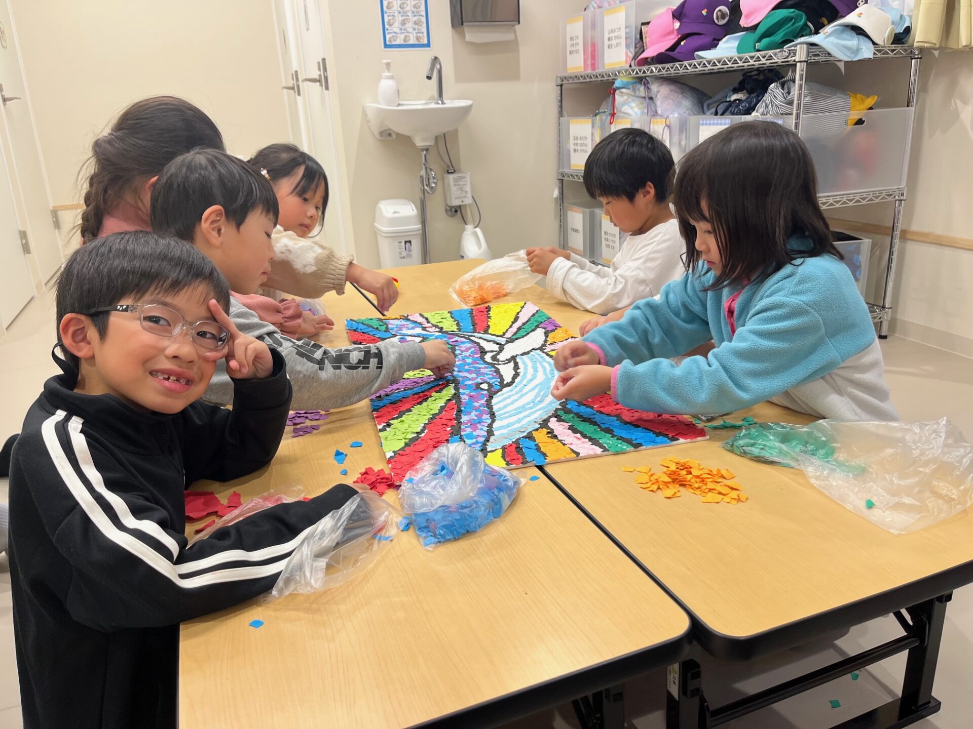 完成した作品を見て、「きれい!」「すごい!」と達成感いっぱいの子どもたちでした♪